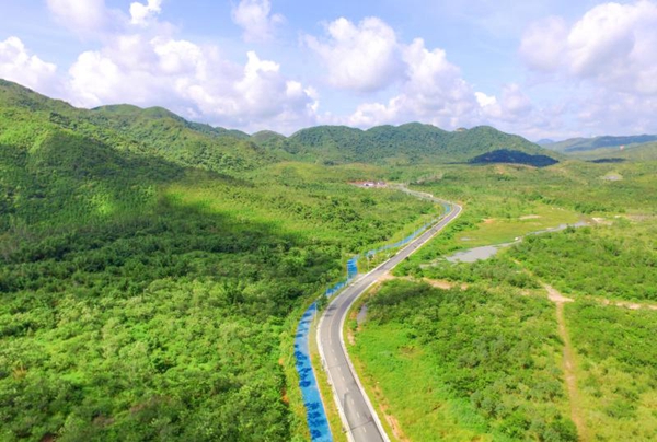 深圳市深汕特別合作區(qū)正在打造中的集“山道、河道、濱海棧道”于一體的圳美綠道鳥(niǎo)瞰圖。