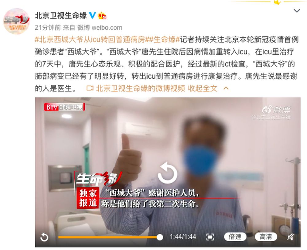“西城大爺”從ICU轉(zhuǎn)回普通病房:最感謝的人是醫(yī)生