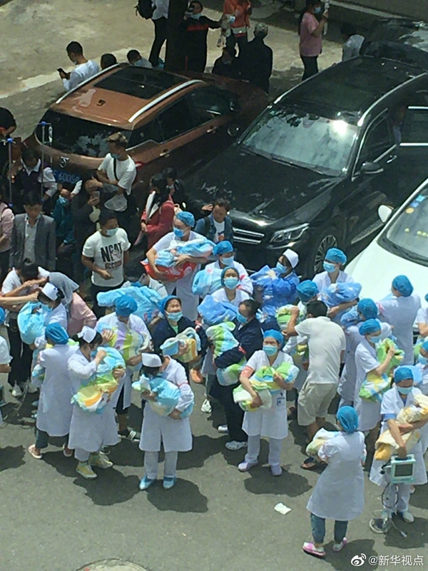 7月2日,貴州省畢節(jié)市赫章縣發(fā)生4.5級地震,震源深度13千米。地震襲來,當(dāng)不少人都往外疏散時,正在開展業(yè)務(wù)學(xué)習(xí)的赫章縣人民醫(yī)院新生兒科醫(yī)生們第一時間“逆行”病房,緊隨而來的還有實習(xí)生、急診科護士等。他們每人負(fù)責(zé)一個寶寶,抱著往外疏散,確保當(dāng)時在病房的26個新生寶寶平安撤離到安全地帶。致敬白衣天使?。ㄓ浾咄跣旅鳌Ⅰ橈w 圖片來源赫章縣人民醫(yī)院)