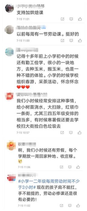 對于大中小學(xué)開展勞動(dòng)教育,不少網(wǎng)友都持認(rèn)同態(tài)度,表示是時(shí)候讓“四體不勤五谷不分”的小朋友們體驗(yàn)一下什么是勞動(dòng)了。還有人對勞動(dòng)課究竟要教什么也給出了自己的建議: