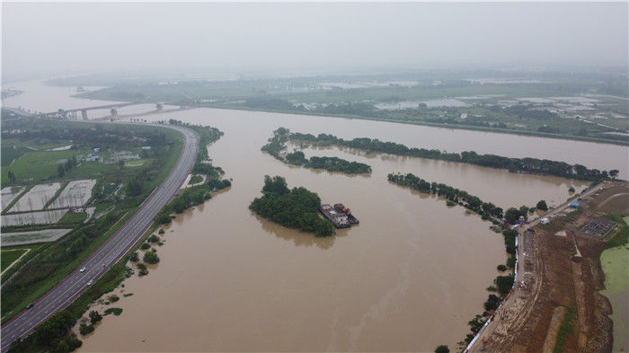 流經安徽肥西縣三河鎮(zhèn)的河流水位猛漲(7月19日攝,無人機照片)。新華社記者 陳諾 攝