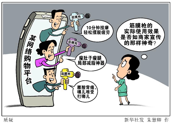 “10分鐘按摩輕松擺脫疲勞”“瘦肚子瘦腿局部減脂神器”“腰酸背痛,哪兒難受打哪兒”……近年來,筋膜槍成為一款酷炫的按摩產(chǎn)品,類似產(chǎn)品宣傳網(wǎng)上隨處可見。從百萬粉絲的微博大V博主到流量飛起的直播達人,不少人在賣力推廣、宣傳帶貨。