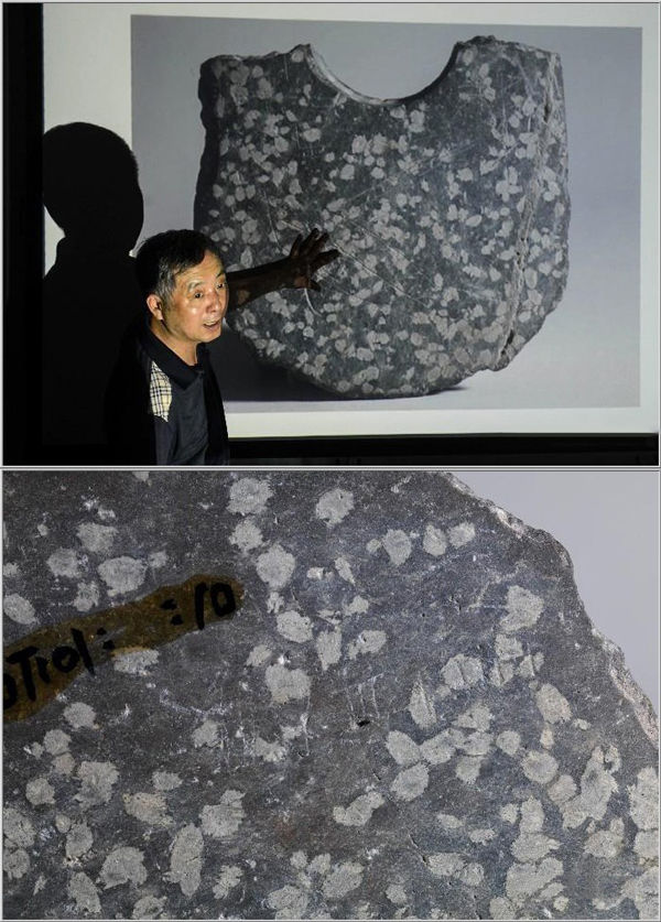 浙江平湖莊橋墳遺址,兩件殘石鉞上發(fā)現(xiàn)的刻畫符號經(jīng)考證確認(rèn)是良渚時期原始文字,距今約5000年 韓傳號 攝