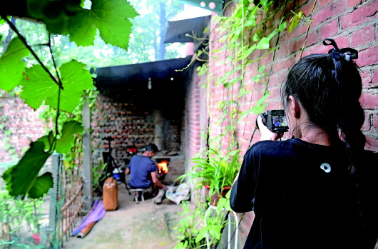 8月5日,王曉楠(左)與父親在河邊拍攝后準(zhǔn)備回家。組圖均由新華社記者郝源攝