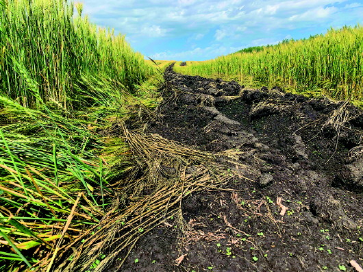 記者現(xiàn)場(chǎng)看到,陳巴爾虎旗特尼河林場(chǎng)大片大片麥田、油菜田里,被鏟出一道道觸目驚心、黑綠相間的“斑馬線”?!霸儆惺嗵炀鸵崭盍?,現(xiàn)在毀了實(shí)在可惜!”附近群眾說(shuō)。