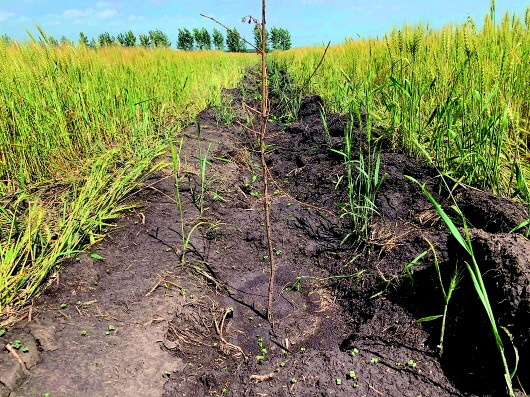 上圖:8月2日,陳巴爾虎旗特尼河林場(chǎng)大片麥田、油菜田,被鏟出一道道黑綠相間的“斑馬線”。中圖:8月2日,陳巴爾虎旗特尼河林場(chǎng)一處被毀的麥田。下圖:8月2日,陳巴爾虎旗特尼河林場(chǎng)一處被毀的麥田里,一些突擊種上的樹(shù)苗已經(jīng)枯萎?!”緢?bào)記者王靖攝