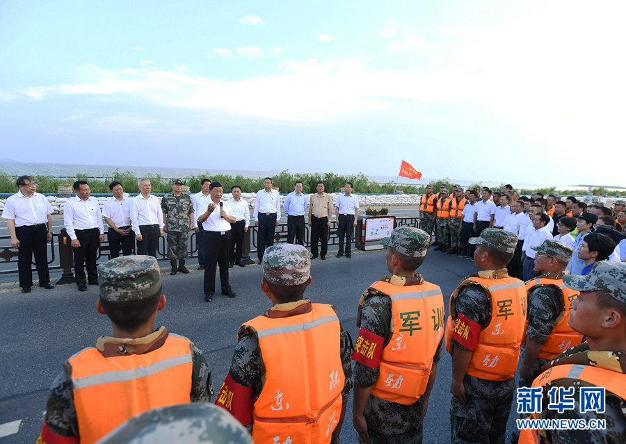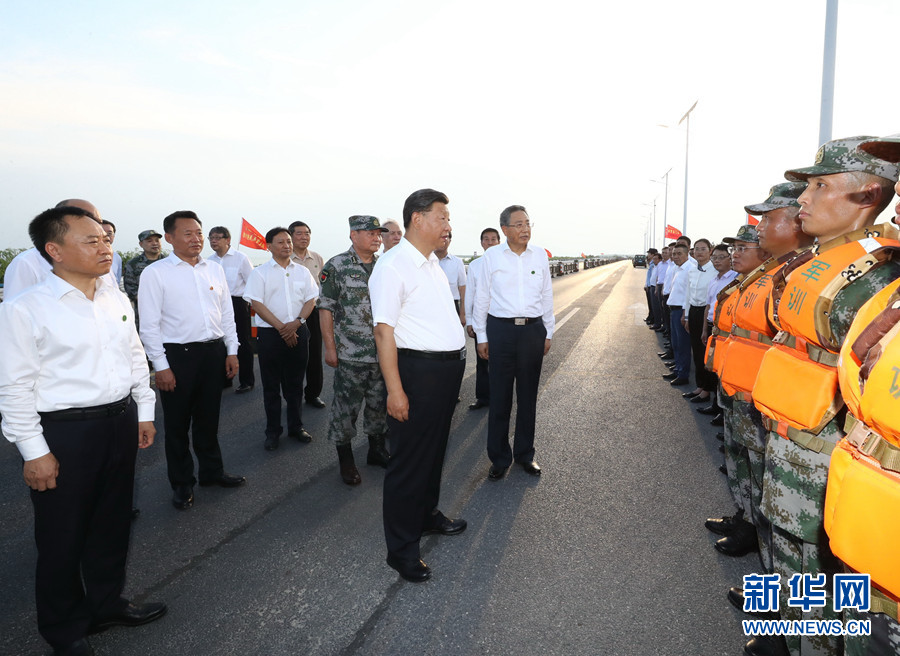 大堤上,習(xí)近平親切看望慰問了在防汛抗洪救災(zāi)斗爭中犧牲同志的家屬、防汛抗洪一線人員、先進(jìn)典型代表和參加抗洪搶險(xiǎn)的部隊(duì)官兵,并向全國奮戰(zhàn)在防汛抗洪救災(zāi)一線的同志們表示誠摯的問候。他強(qiáng)調(diào),今年入汛以來,南北方江河湖泊接連出現(xiàn)超警戒水位險(xiǎn)情。廣大干部群眾和人民解放軍、武警官兵堅(jiān)決響應(yīng)黨和政府號(hào)召,發(fā)揚(yáng)不怕累苦、不怕疲勞、不怕犧牲的精神斗志,堅(jiān)守在防汛抗洪救災(zāi)第一線,涌現(xiàn)了許多先進(jìn)典型和感人事跡,展現(xiàn)了中國人民眾志成城、頑強(qiáng)拼搏、敢于勝利的英雄氣概,書寫了洪水無情人有情的人間大愛。黨和人民感謝你們!