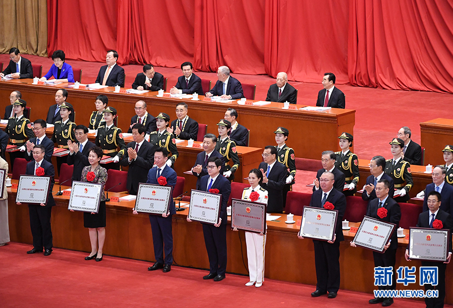 習(xí)近平等為受表彰的個(gè)人和集體代表頒獎(jiǎng)。