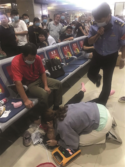 今年4月30日南京苜蓿園地鐵站附近一家健身館內(nèi)一名女子出現(xiàn)心臟驟停,健身館教練、地鐵站值班站長、值班警員等接連對女子進(jìn)行心肺復(fù)蘇,并使用苜蓿園地鐵站設(shè)置的AED對女子進(jìn)行電除顫實(shí)現(xiàn)成功救人。地鐵工作人員告訴記者,公司組織過相應(yīng)的AED操作,當(dāng)時(shí)他通過監(jiān)控看到有人拿AED,就跟了過去,發(fā)現(xiàn)有人疑似心臟驟停,就迅速參與了急救的過程。