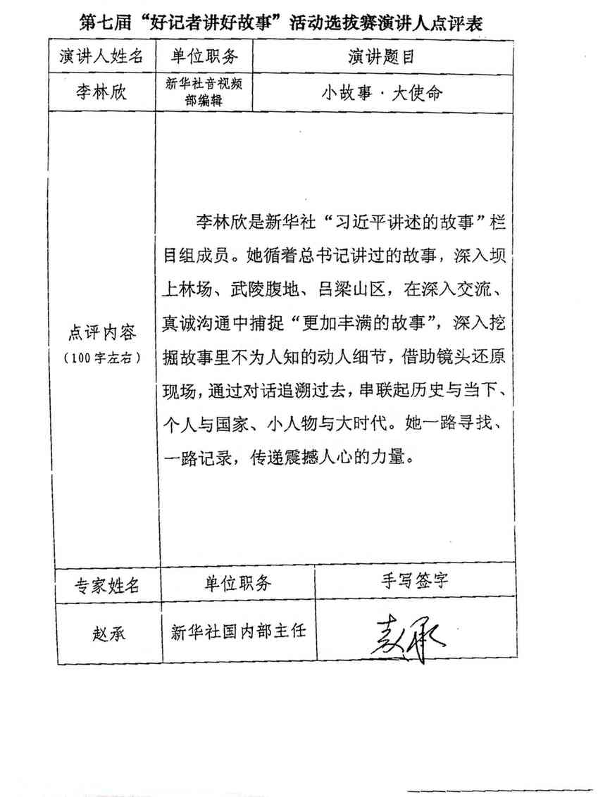 趙承點(diǎn)評(píng)李林欣《小故事·大使命》