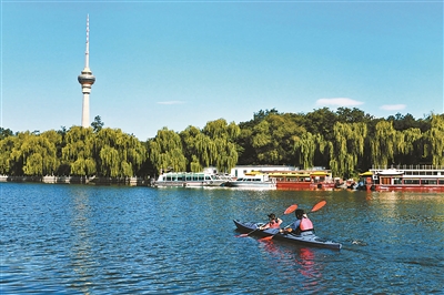 秋高氣爽、天藍水清,玉淵潭公園南側(cè)的八一湖碧波蕩漾,五彩的皮劃艇在水中游弋……從9月份開始,八一湖內(nèi)2萬平方米的水域正式成為北京市天然河湖水域,并向市民開放水上運動試點,市民可體驗和學(xué)習(xí)皮劃艇運動。實際上,“十三五”以來,越來越多的北京城市河湖已經(jīng)從之前的“閑人勿進”變成了市民的親水樂園。