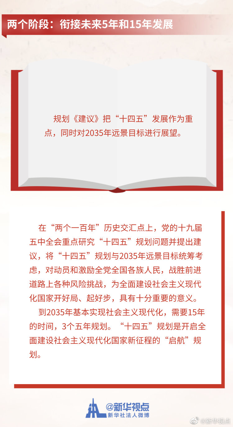 《中共中央關(guān)于制定國民經(jīng)濟和社會發(fā)展第十四個五年規(guī)劃和二〇三五年遠景目標(biāo)的建議》3日公布。這份長約2萬字的文件,為未來5年及15年的中國發(fā)展勾勒藍圖。記者梳理出規(guī)劃《建議》中的“一二三四五”,為觀察中國發(fā)展走向提供一個獨特視角。