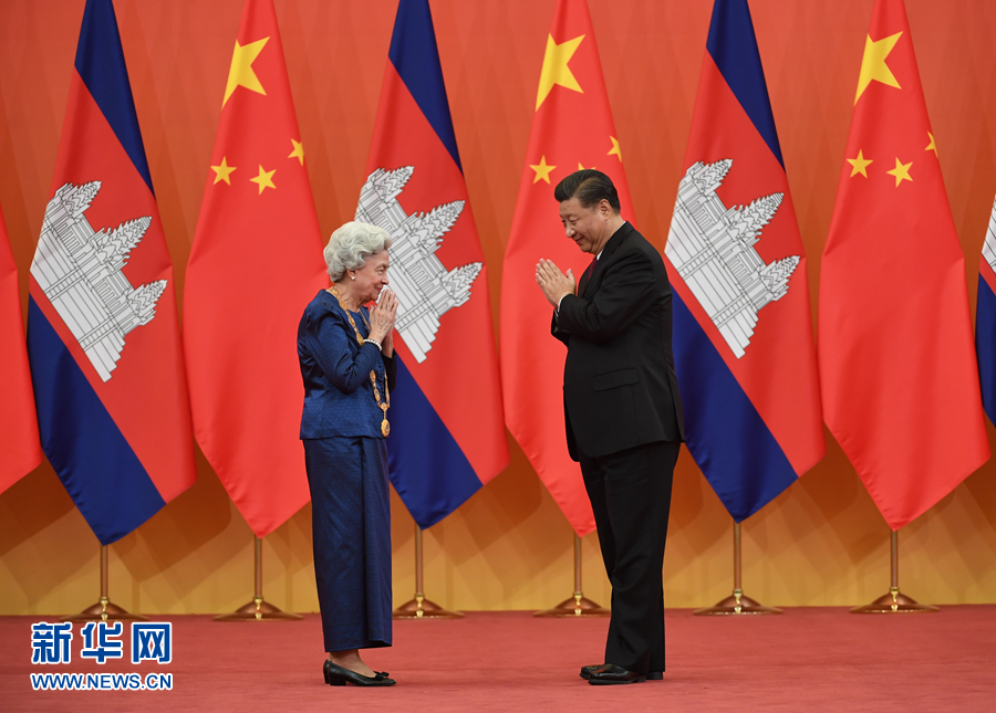 新華社北京11月6日電 國(guó)家主席習(xí)近平6日在人民大會(huì)堂為柬埔寨太后莫尼列舉行中華人民共和國(guó)“友誼勛章”頒授儀式。