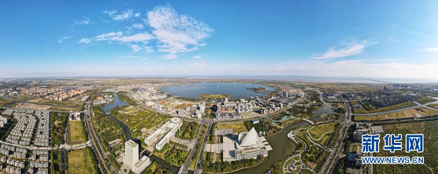 上海浦東新區(qū)臨港新城滴水湖畔(10月25日攝,無人機(jī)全景照片)。新華社記者 方喆 攝