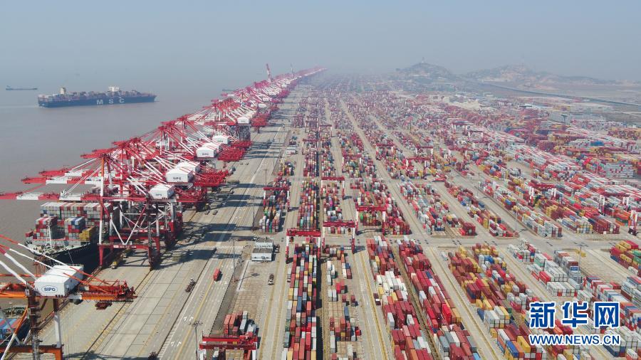 上海洋山港集裝箱碼頭(3月18日攝,無人機(jī)照片)。新華社記者 丁汀 攝