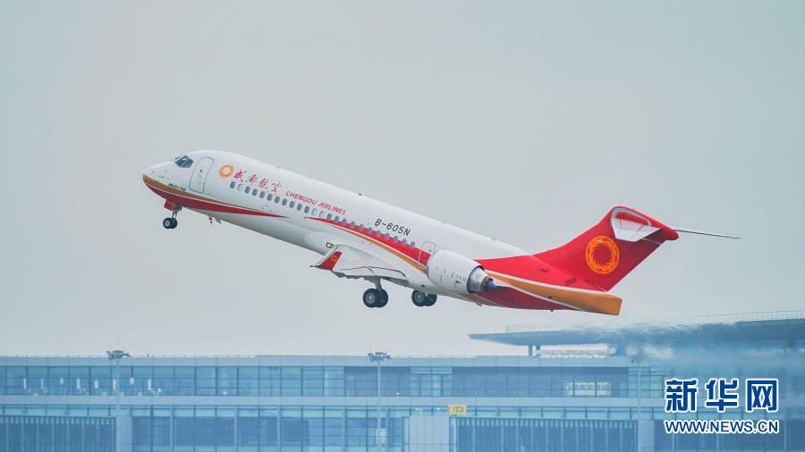 一架ARJ21飛機(jī)在飛行(資料照片)。新華社發(fā)(中國(guó)商飛四川分公司供圖)