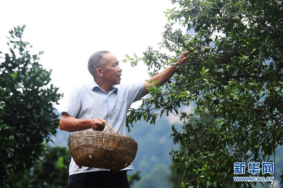 毛相林在采摘脆李(2020年7月3日攝)。