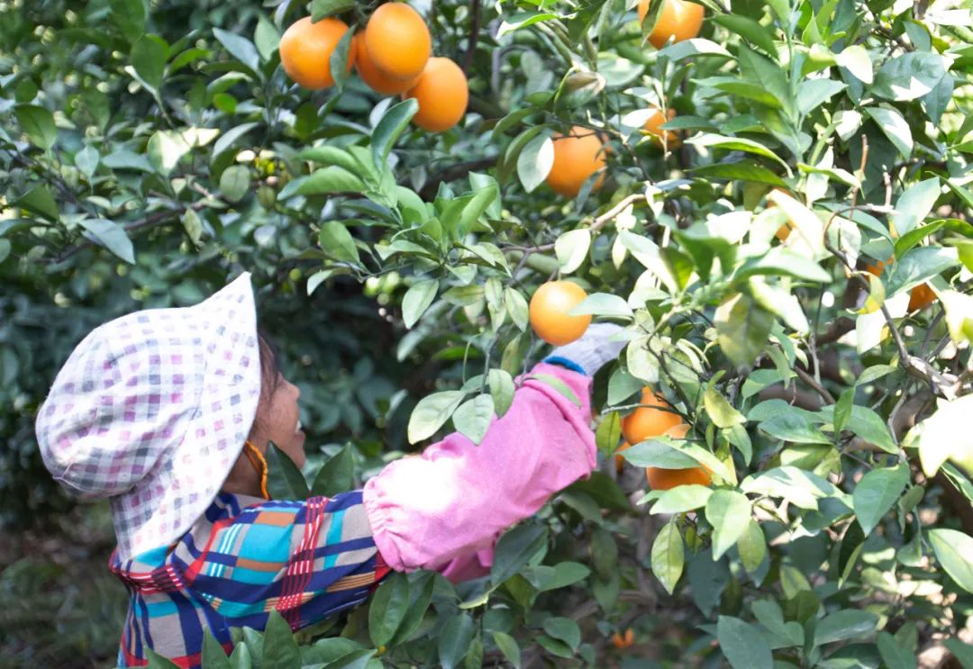 贛州市贛縣區(qū)王母渡鎮(zhèn)潭埠村的果農(nóng)在采摘臍橙 張浩波 攝