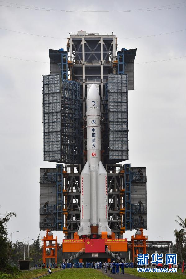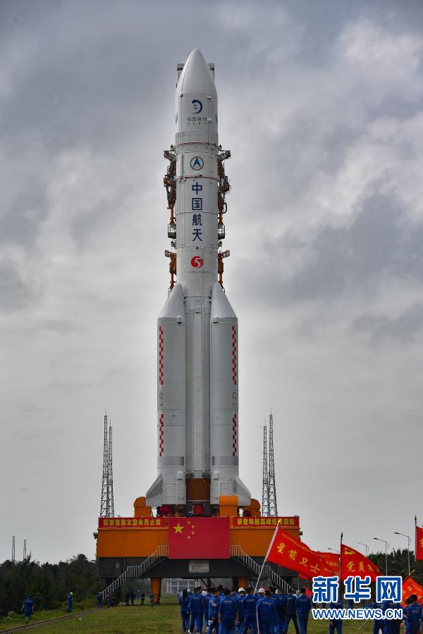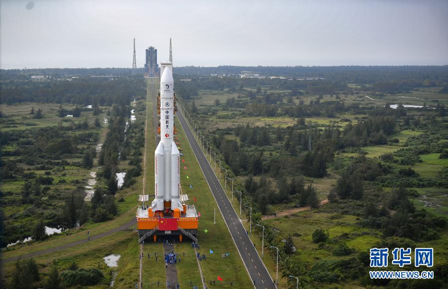 新華社海南文昌11月17日電(記者胡喆、陳凱姿)記者從國家航天局獲悉,11月17日,長征五號遙五運載火箭和嫦娥五號探測器在中國文昌航天發(fā)射場完成技術區(qū)總裝測試工作后,垂直轉(zhuǎn)運至發(fā)射區(qū),計劃于11月下旬擇機實施發(fā)射。