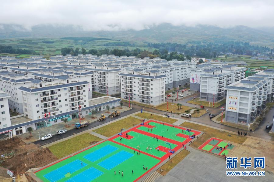 金陽縣山江鄉(xiāng)老寨子村易地扶貧集中安置點(diǎn)和通村公路(6月7日攝,無人機(jī)照片)。新華社記者 江宏景 攝