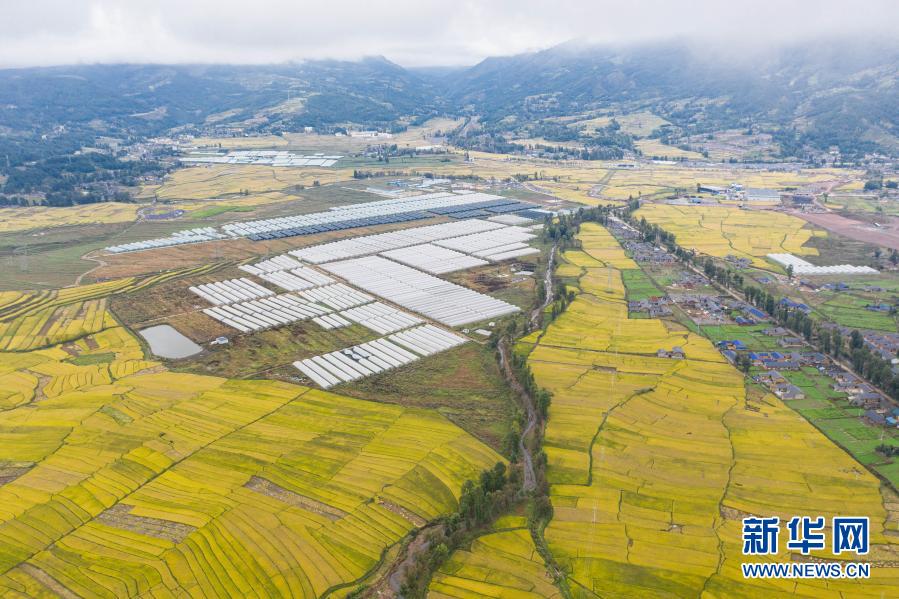 昭覺縣阿并洛古鄉(xiāng)的美麗田園和農(nóng)業(yè)產(chǎn)業(yè)園(10月13日攝,無人機(jī)照片)。新華社記者 江宏景 攝