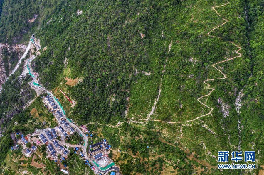 金陽縣天地壩鎮(zhèn)通往吉史里口村易地扶貧搬遷集中安置點(diǎn)的道路(6月7日攝,無人機(jī)照片)。新華社記者 江宏景 攝