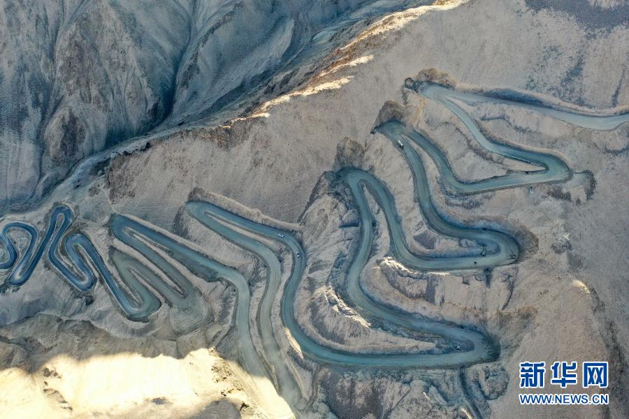 這是新疆塔什庫(kù)爾干塔吉克自治縣吾格亞提盤(pán)山公路(2019年10月20日攝,無(wú)人機(jī)照片)。新華社記者 丁磊 攝