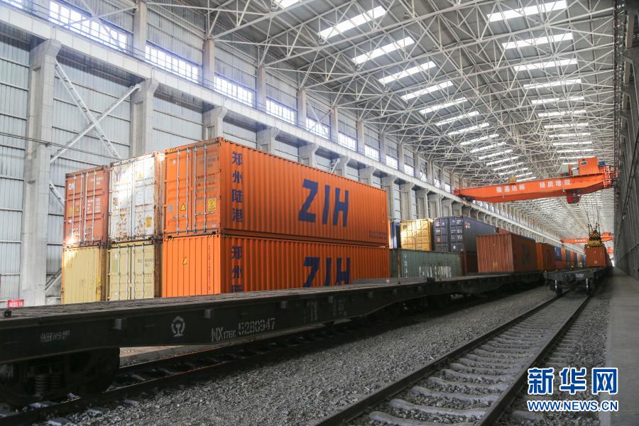 新疆阿拉山口站綜合換裝庫(kù)(三區(qū))內(nèi)等待換裝的集裝箱(9月29日攝)。新華社發(fā)(于蘇甫·艾尼 攝)