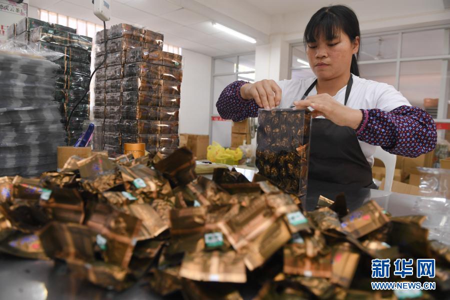 10月27日,在福建省安溪縣感德鎮(zhèn)槐川村的慶蕓茶葉專業(yè)合作社,工人在包裝鐵觀音茶葉。新華社記者 宋為偉 攝