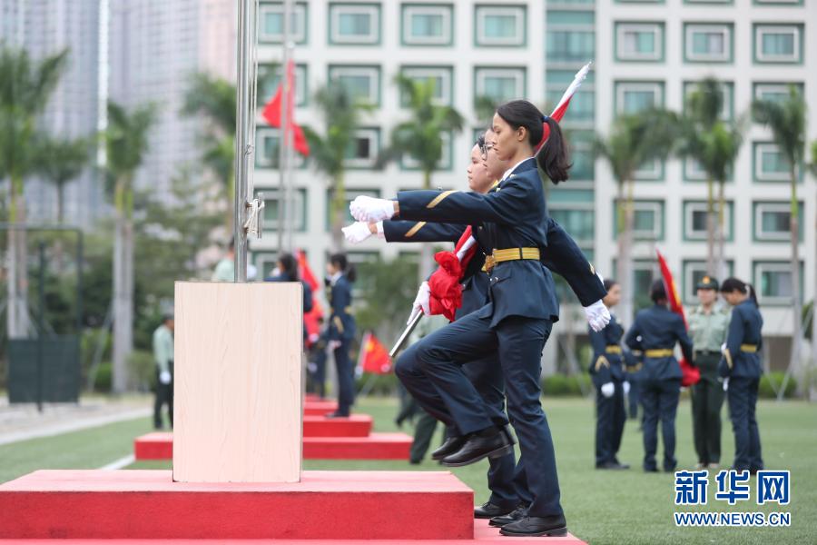 來自澳門坊眾學校中學部的初三學生麥盈盈是第一次參加駐軍組織的國旗手培訓。她說,作為一名護旗手,親手護送著國旗升起,心中感到無上的光榮。