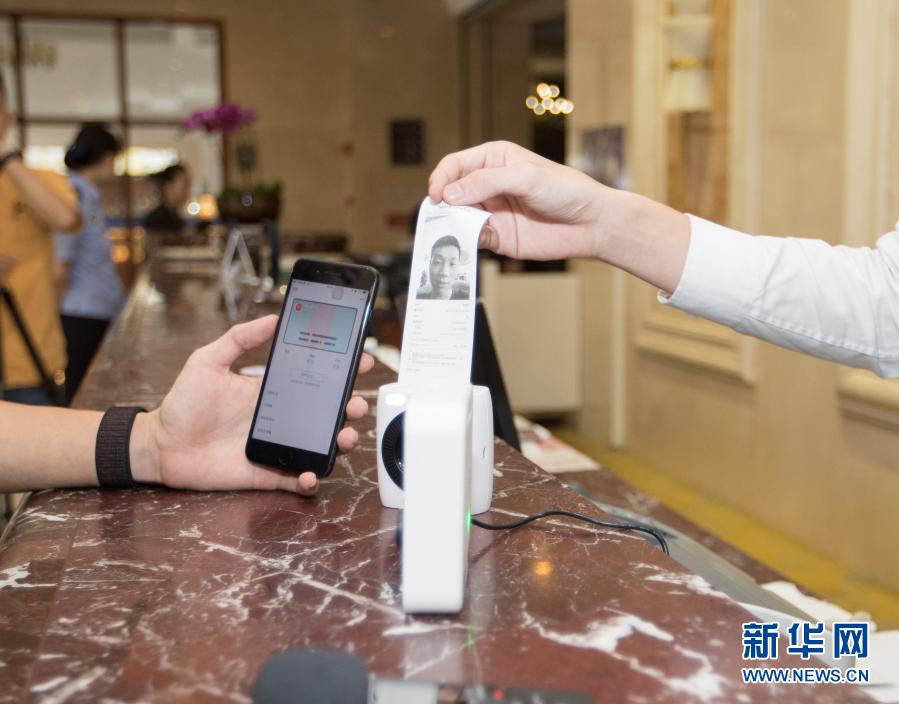 這是“微警認(rèn)證”身份認(rèn)證技術(shù)在辦理酒店入住時的應(yīng)用場景(2018年7月19日攝)。新華社發(fā)(廣州市公安局供圖)