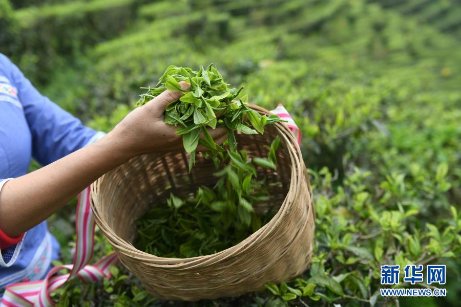 在廣西百色市凌云縣一處有機茶園,當?shù)夭柁r(nóng)在采春茶(2019年3月27日攝)。新華社記者 陸波岸 攝
