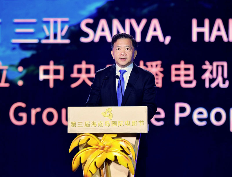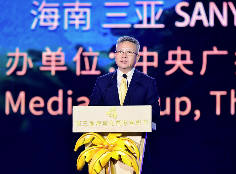 △中宣部副部長(zhǎng)、中央廣播電視總臺(tái)臺(tái)長(zhǎng)、第三屆海南島國(guó)際電影節(jié)組委會(huì)主席慎海雄致辭并宣布開(kāi)幕