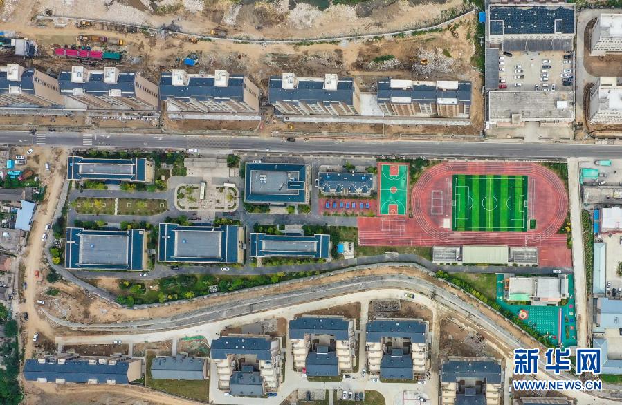 這是河北省阜平縣龍泉關(guān)學(xué)校鳥瞰圖(10月5日攝,無人機(jī)照片)。新華社發(fā)