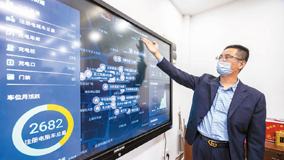 今年以來(lái),上海市靜安區(qū)芷江西路街道對(duì)轄區(qū)內(nèi)的老舊小區(qū)非機(jī)動(dòng)車車庫(kù)(棚)進(jìn)行智能化改造,利用物聯(lián)網(wǎng)技術(shù)將車輛相關(guān)信息傳遞到小區(qū)物業(yè)公司管理平臺(tái)。圖為工作人員介紹非機(jī)動(dòng)車庫(kù)管理系統(tǒng)。王 翔攝(新華社發(fā))