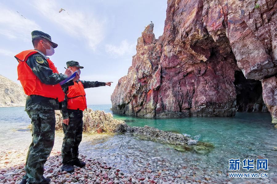 海警執(zhí)法員對(duì)轄區(qū)無居民海島進(jìn)行檢查(5月20日攝)。新華社發(fā)(包新宇 攝)