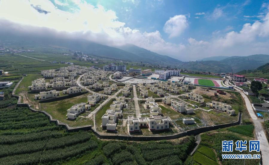 這是9月1日在四川省涼山彝族自治州喜德縣魯基鄉(xiāng)中壩村拍攝的易地扶貧搬遷安置點(無人機照片)。新華社記者 王曦 攝