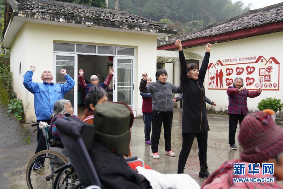 12月4日,在江西省撫州市黎川縣德勝鎮(zhèn)德勝村“幸福之家”養(yǎng)老服務站,工作人員帶領居民一起做操鍛煉身體。新華社記者 胡晨歡 攝