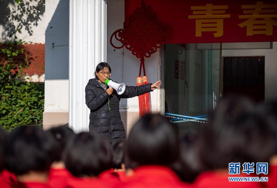 張桂梅在督促學(xué)生做課間操(12月2日攝)。新華社發(fā)(陳欣波 攝)