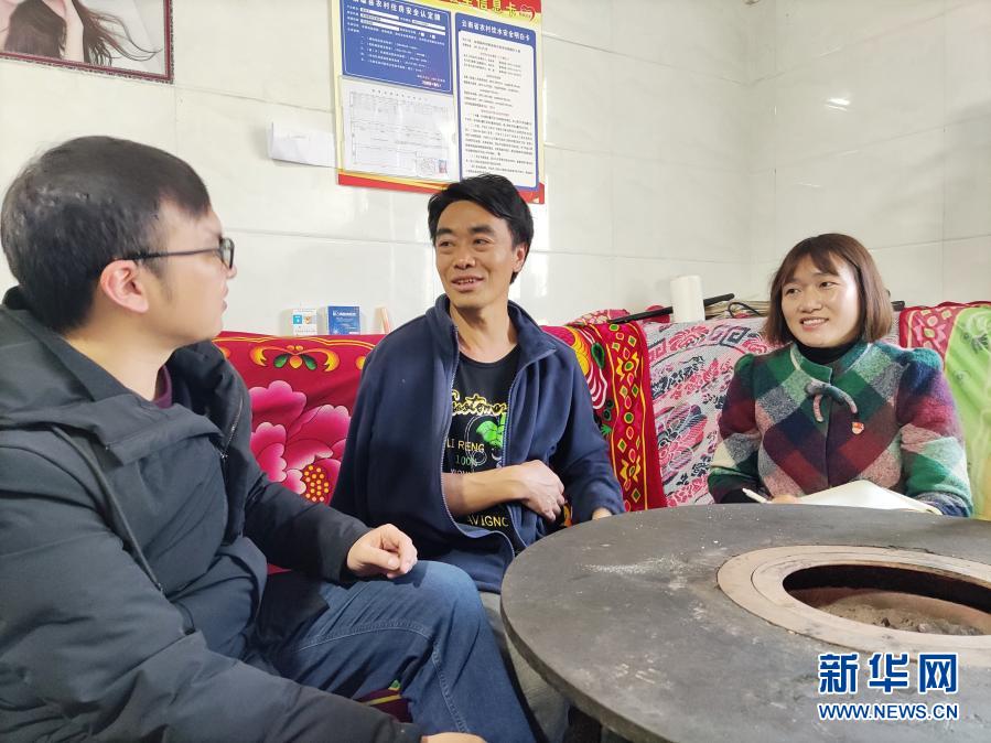 11月12日,云南省鎮(zhèn)雄縣以古鎮(zhèn)巖洞腳村駐村第一書記郭登會(右)和扶貧隊員到村民趙慶元(中)家里走訪。新華社記者 林碧鋒 攝