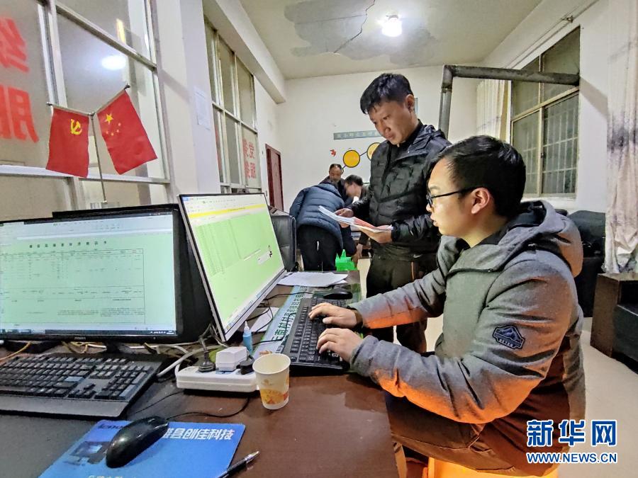 11月11日晚,云南省鎮(zhèn)雄縣以古鎮(zhèn)巖洞腳村駐村第一書記郭登會在村委會工作。新華社記者 王冠森 攝
