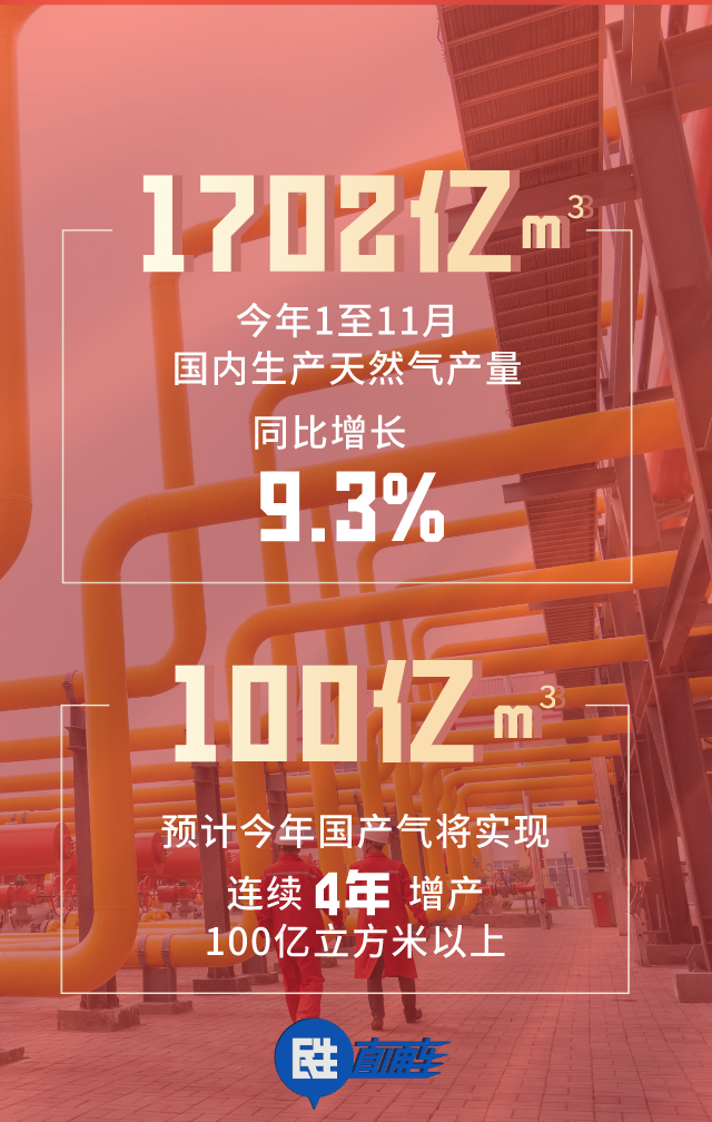 一是國內(nèi)生產(chǎn)穩(wěn)定。今年1至11月,國內(nèi)生產(chǎn)天然氣1702億立方米,比去年同期增長9.3%,預(yù)計今年國產(chǎn)氣將實現(xiàn)連續(xù)4年增產(chǎn)100億立方米以上,這為穩(wěn)定供氣奠定扎實基礎(chǔ)。