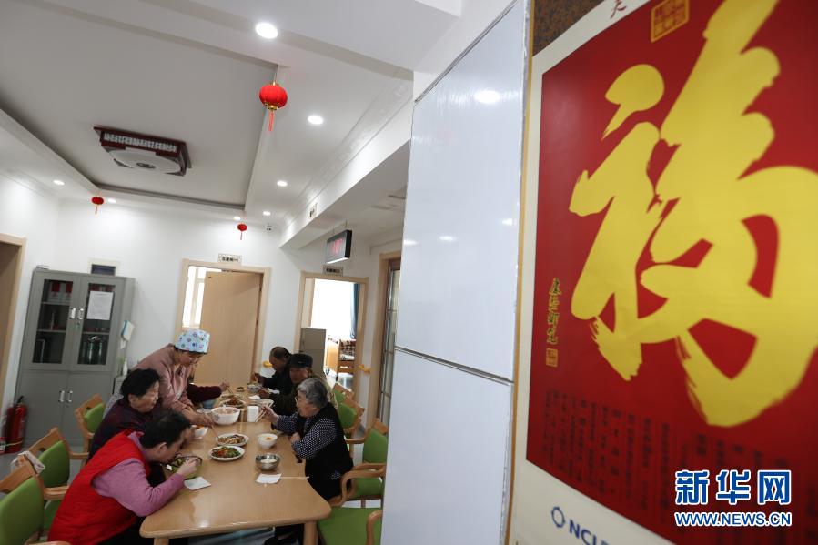 10月22日,老人們在西寧市城西區(qū)溫馨陽光托老所內(nèi)吃飯。新華社記者 吳剛 攝