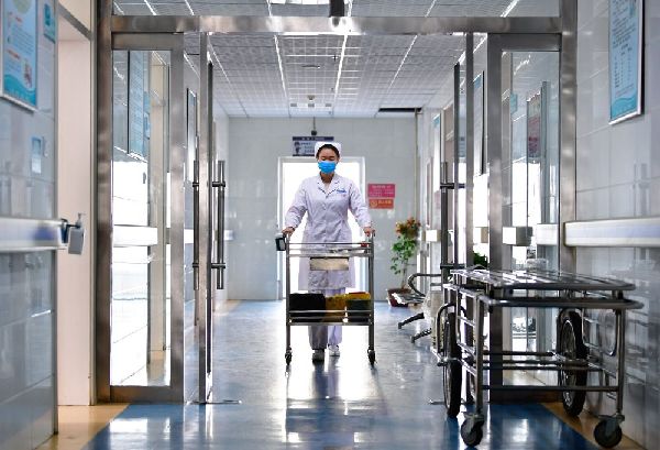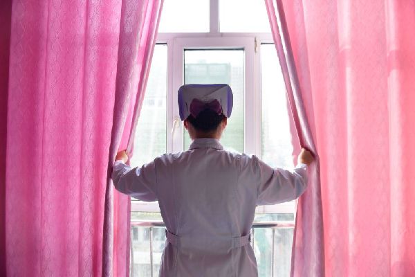 12月16日,海東市第一人民醫(yī)院內(nèi)科護(hù)士劉海婷在病房內(nèi)為患者拉開窗簾。