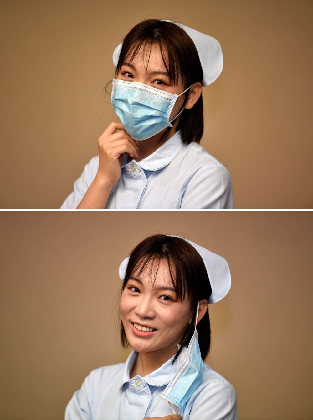 一身護(hù)士裝出現(xiàn)在鏡頭前,張碩依然戴著口罩,卻遮擋不住眉宇間散發(fā)出的青春朝氣。