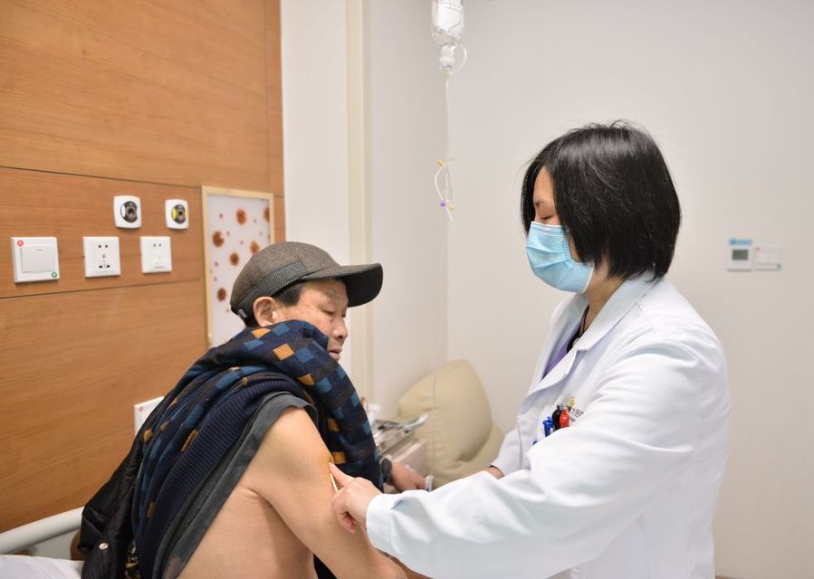 有了患癌康復的經歷,周國紅更能與患者感同身受。每當遇到情緒低落的患者,她都會主動亮出脖子上的傷疤,用自己的抗癌經歷給患者打氣。