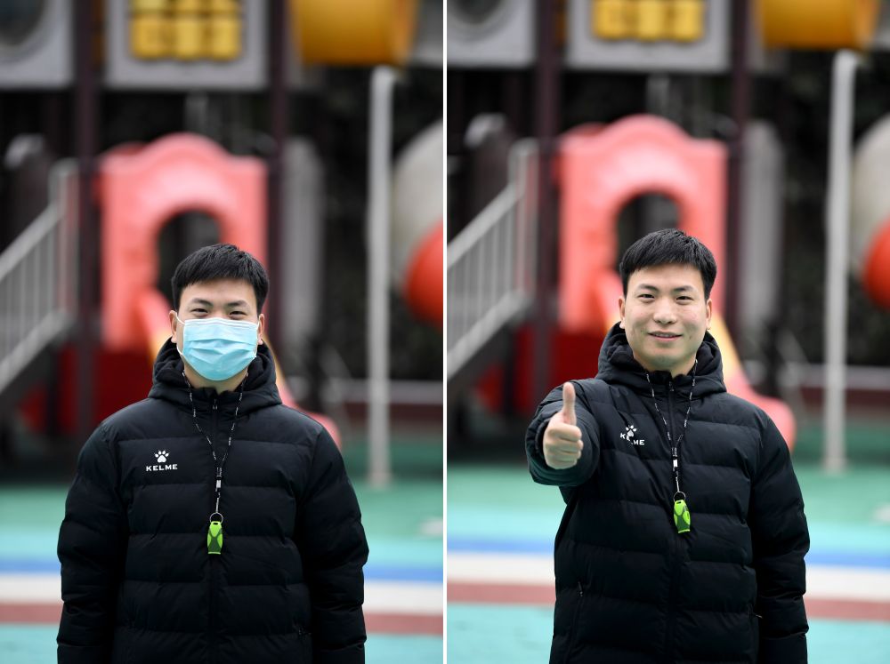 再次進(jìn)入記者鏡頭的孫浩,口罩摘下了,短袖變成了羽絨服,不變的是他身邊簇?fù)碇暮⒆?,以及他在這一年最溫暖的笑容。