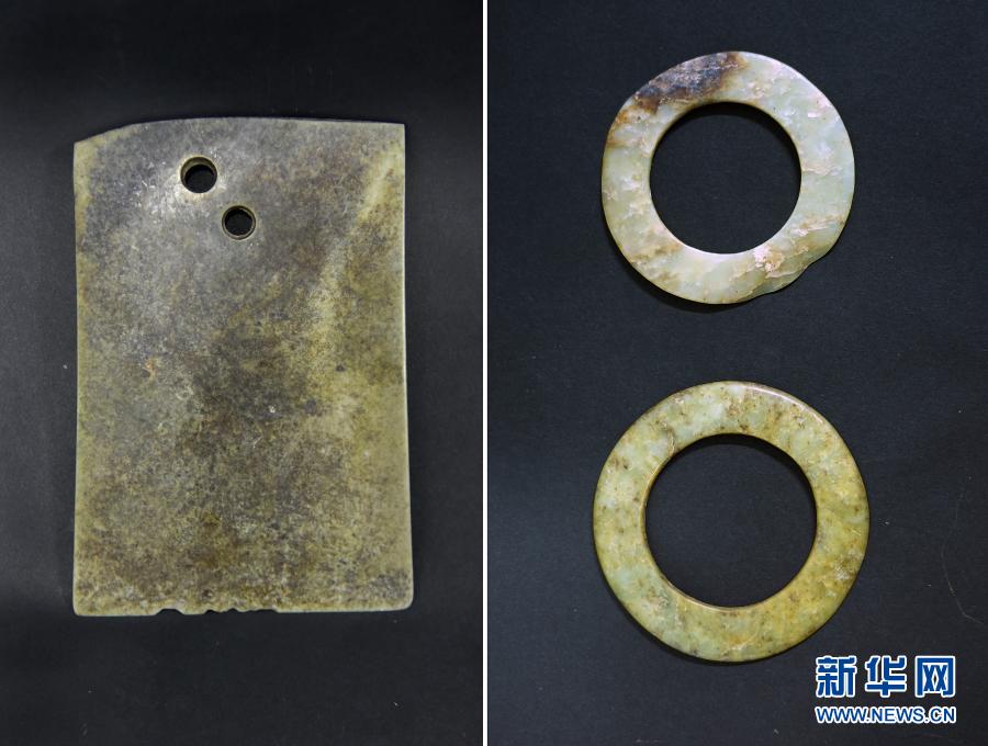 山東滕州崗上遺址出土的玉器(拼版照片)。新華社發(fā)(國家文物局供圖)