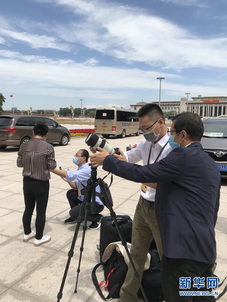 5月20日,全國(guó)政協(xié)十三屆三次會(huì)議召開(kāi)新聞發(fā)布會(huì)。大會(huì)新聞發(fā)言人郭衛(wèi)民向中外媒體介紹本次大會(huì)有關(guān)情況并回答記者提問(wèn)。圖為本網(wǎng)記者在人民大會(huì)堂東門(mén)外廣場(chǎng)做直播前準(zhǔn)備工作。新華網(wǎng)記者 周紅軍? 攝