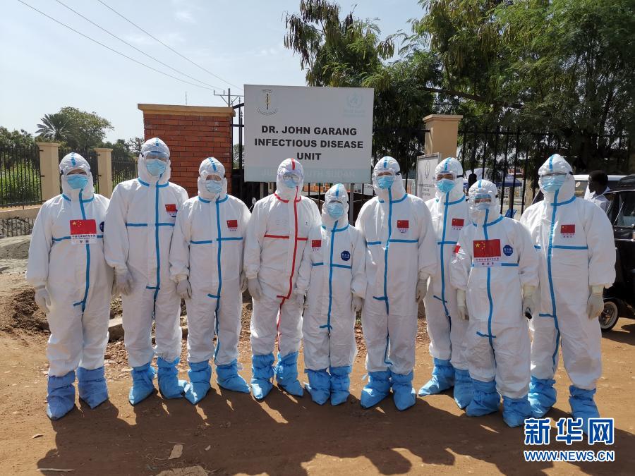 2020年8月21日,中國(guó)抗疫醫(yī)療專(zhuān)家組成員在南蘇丹首都朱巴的一處新冠肺炎治療機(jī)構(gòu)留影。新華社發(fā)(中國(guó)駐南蘇丹大使館供圖)